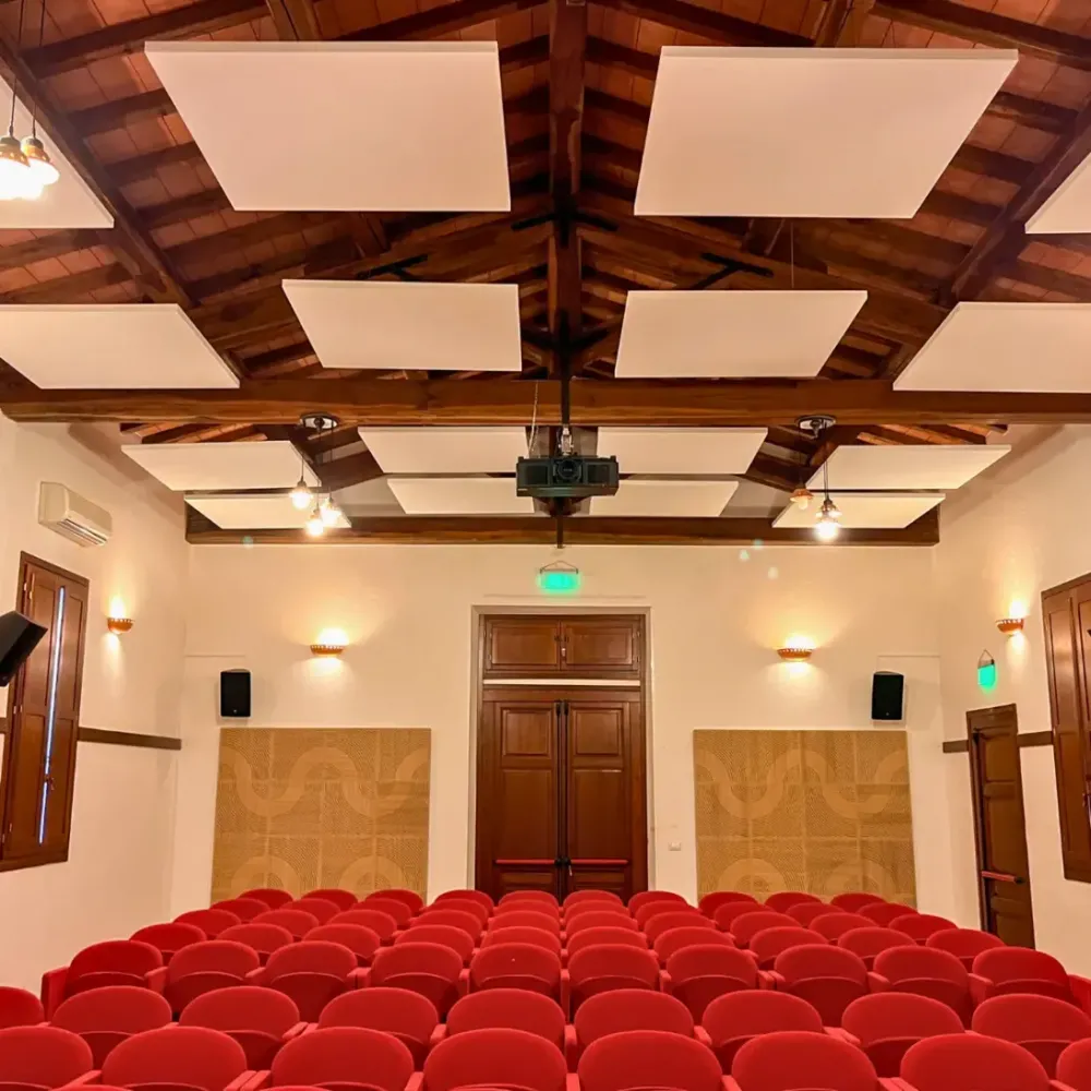 Мы установили микроперфорированные панели Wavo , стратегически расположенные вдоль стен и потолков, где звуковые волны были наиболее проблематичными. Эти панели были настроены специально на речевые частоты, эффективно увеличивая четкость диалогов для всех рядов сидений.