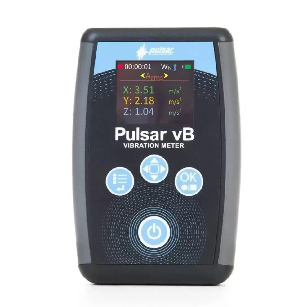 Измеритель vB использует трёхосевой акселерометр для одновременного измерения уровня вибрации по осям X, Y и Z, отображая показания в режиме реального времени на большом цветном OLED-дисплее. Прибор измеряет ускорение (Aeq, Amax, пиковое значение и векторную сумму) и автоматически рассчитывает точки воздействия (HSE), предельно допустимую дозу воздействия (EAV) и предельно допустимую дозу воздействия (ELV) в соответствии со стандартами ISO. Интуитивно понятный цветовой дисплей (зелёный, янтарный, красный) мгновенно отображает уровни риска, а данные можно загрузить в программное обеспечение vB Plus для подробного анализа и составления отчётов о соответствии.